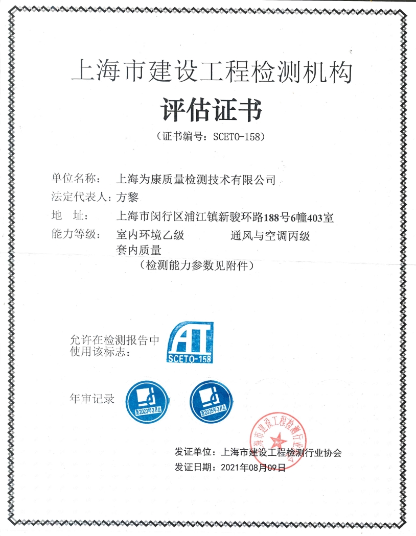 服務范圍:上海市新建、改建、擴建工程項目竣工驗收備案室內環境檢測、個人家庭新房裝修污染空氣檢測、學校、幼兒園等公共場所空氣檢測、精裝修房交房驗收室內空氣檢測、辦公室室內空氣污染檢測